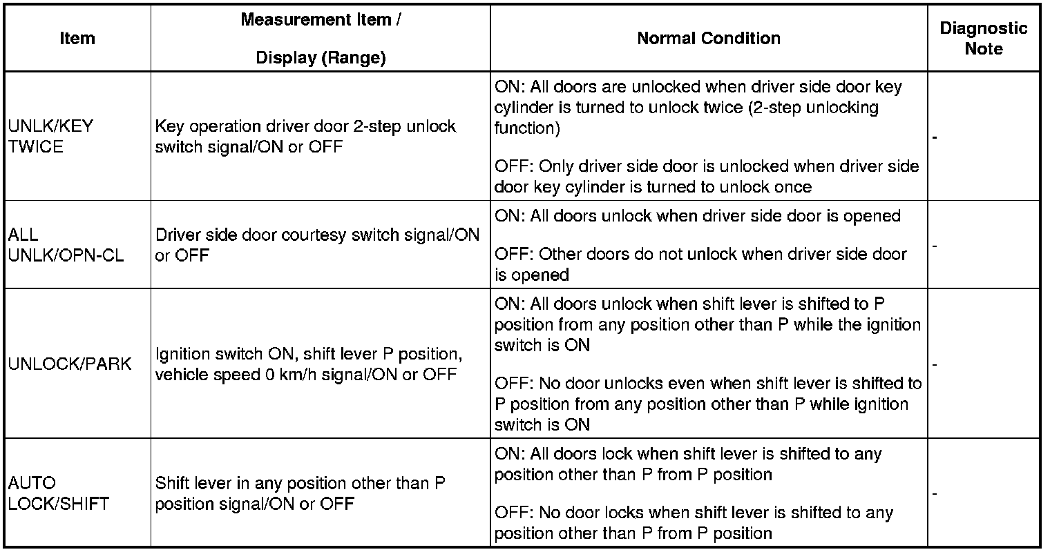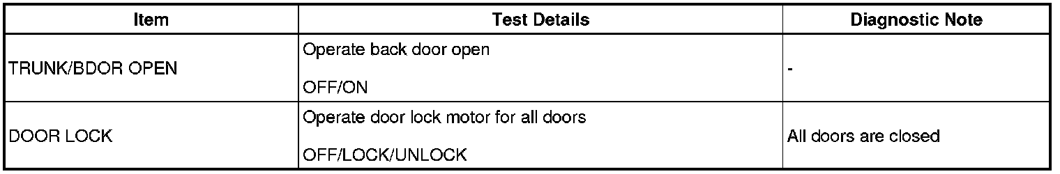 DOOR LOCK: POWER DOOR LOCK CONTROL SYSTEM: DATA LIST / ACTIVE TEST
