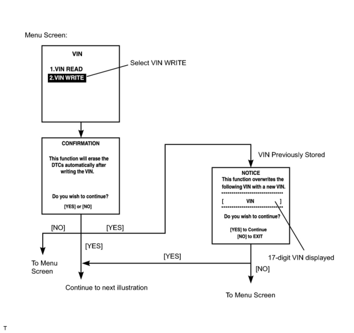 (a) The VIN writing process is shown in the flowchart below. This process allows the VIN to be input into the ECM. If the ECM is changed, or the ECM VIN and Vehicle VIN do not match, the VIN can be registered, or overwritten in the ECM by following this procedure.