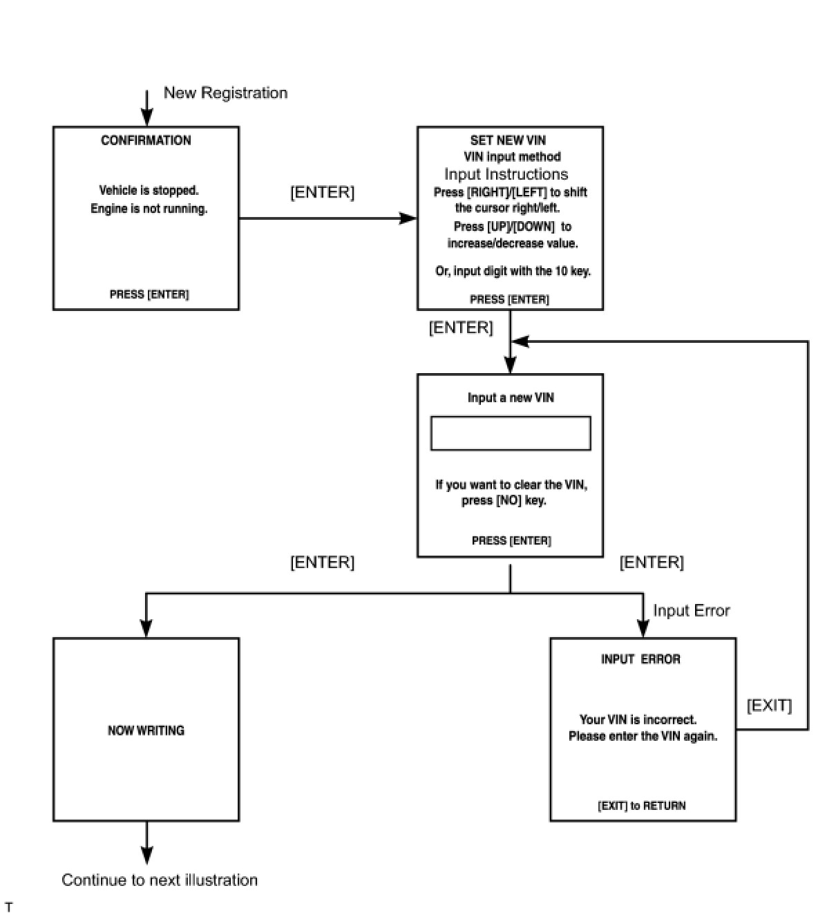 (1) Make sure that the input VIN matches the vehicle VIN after input.