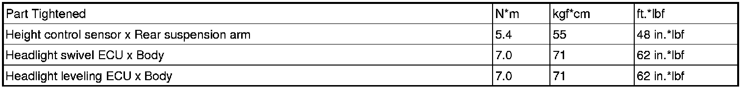 SERVICE SPECIFICATIONS: LIGHTING: TORQUE SPECIFICATIONS