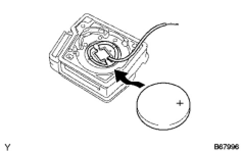 (1) Remove the battery from the electrical key transmitter that does not operate. Attach a lead wire (0.6 mm (0.0236 in.) in diameter or less including wire sheath) with tape or equivalent to the negative terminal Service and Repair.