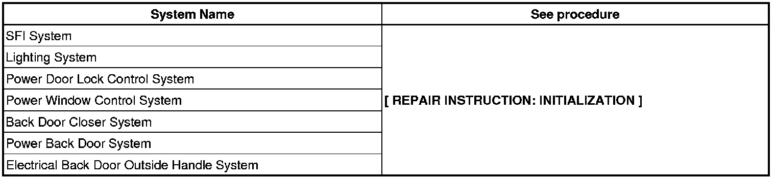 NOTE: When disconnecting the negative (-) battery terminal, initialize the following system after the terminal is reconnected.