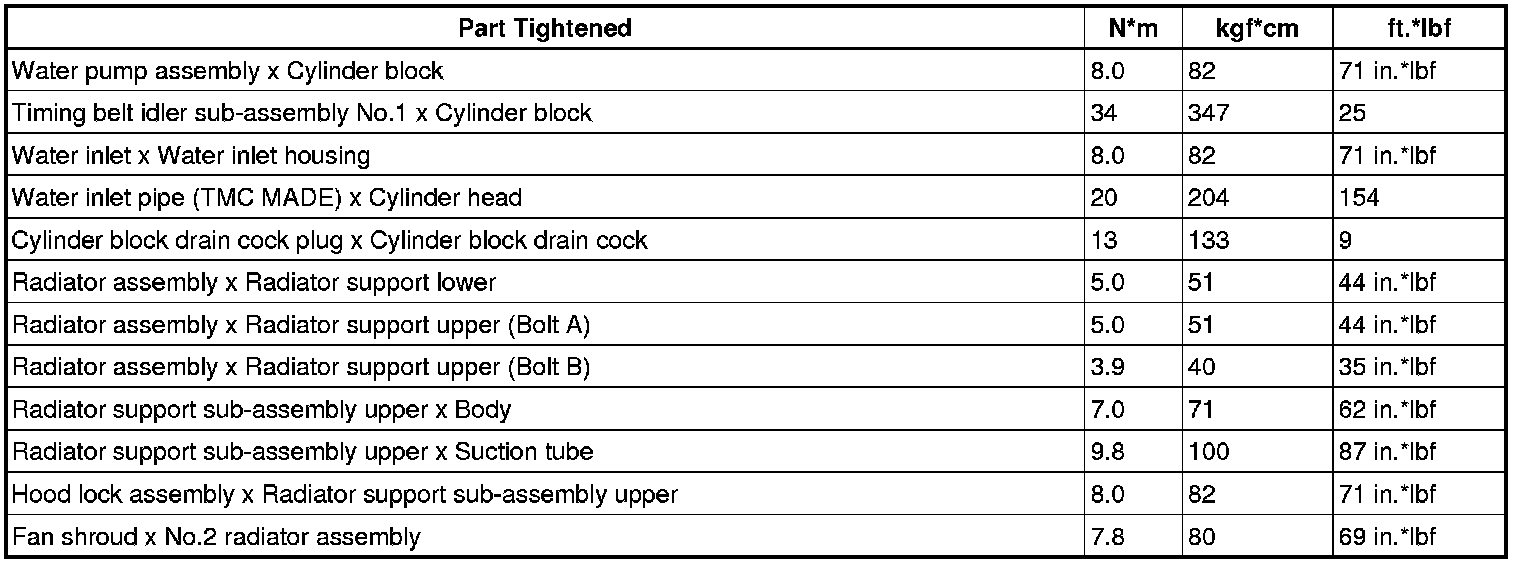 TORQUE SPECIFICATIONS