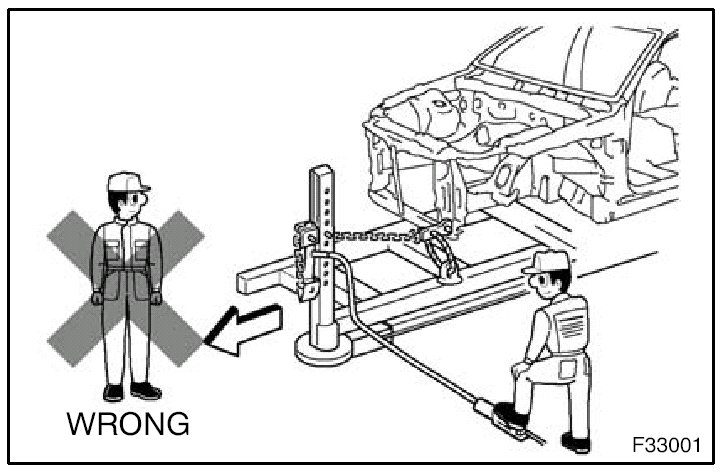 1. Never stand in the path of the chain when using a puller on the body or frame, and be sure to attach a safety cable.