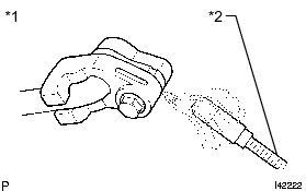 * When bringing the halogen leak detector close to the drain hose, make sure that the halogen leak detector does not react to volatile gases. If it is not possible to avoid interference from volatile gases, the vehicle should be lifted up to allow testing.