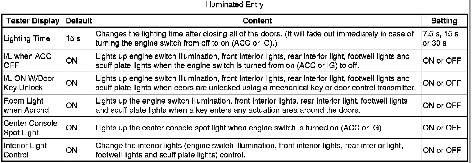 (d) Enter the following menus: Customize Setting / Illuminated Entry.