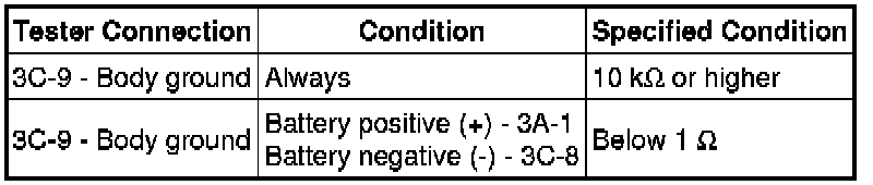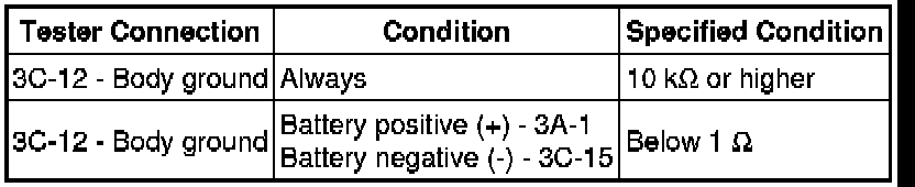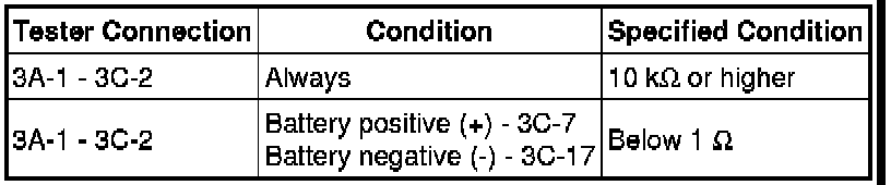 1 Measure the resistance and check for pulses according to the value(s) in the table below.