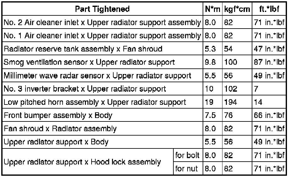 SPECIFICATIONS: 2GR-FXE COOLING: TORQUE SPECIFICATIONS