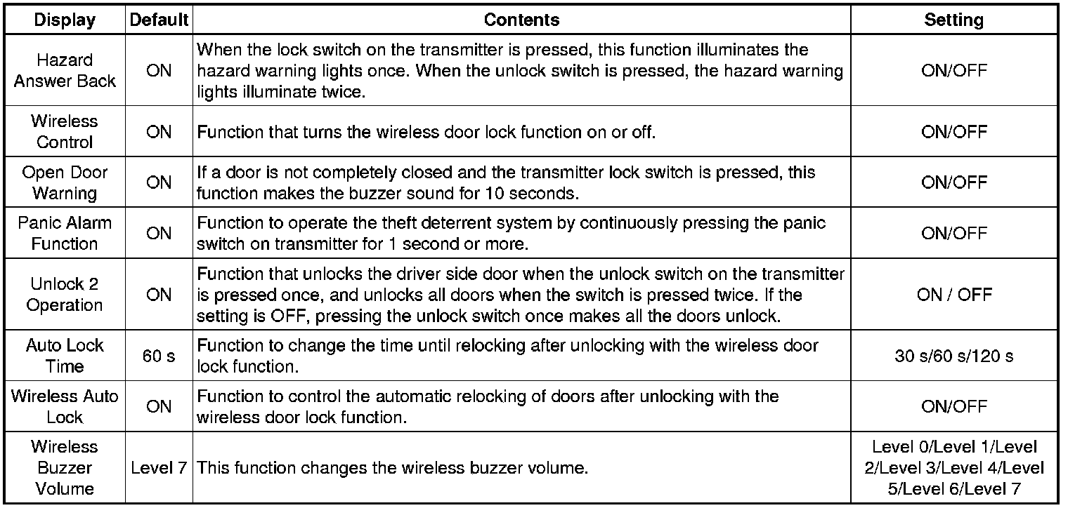 (e) Select the setting by referring to the table below.