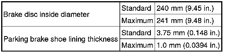 SPECIFICATIONS: PARKING BRAKE: SERVICE DATA