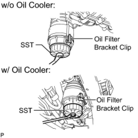 * When tightening the oil filter cap, do not remove the oil filter bracket clip.