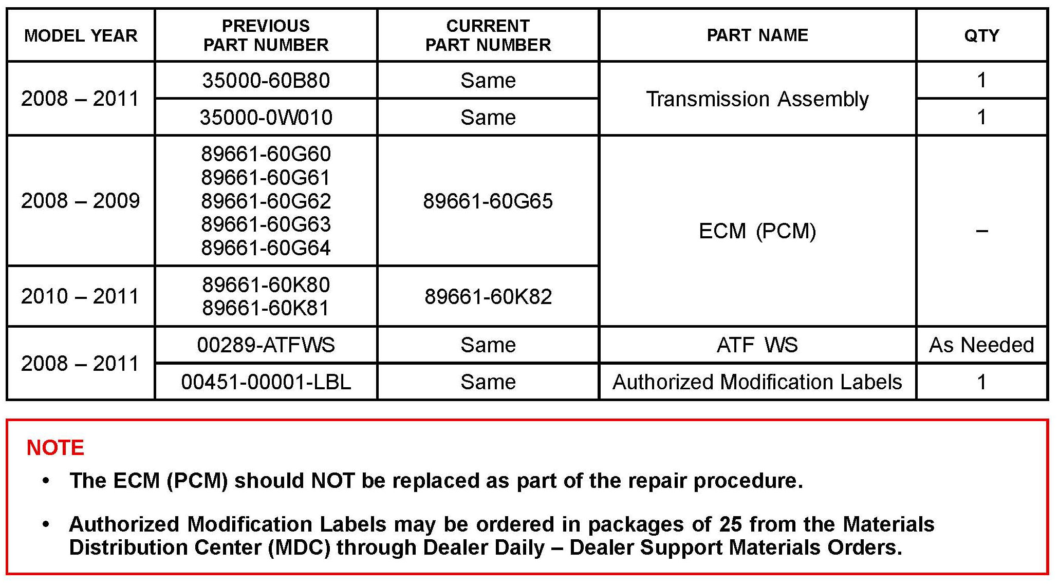 ^ YES - Reprogram the ECM (PCM) per steps 5 - 6, then replace the transmission assembly per step 8.