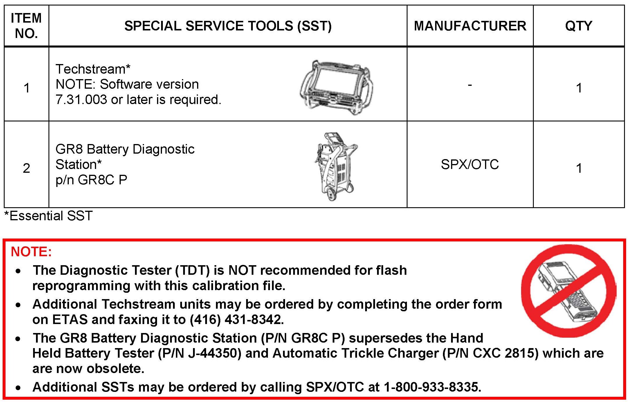 ^ For details on how to use the GR8 Battery Diagnostic Station, refer to the GR8 Battery Diagnostic Station Instruction Manual located on ETAS/TIS library > Tools > tools and equipment > GR8 Battery Diagnostic Station Instruction Manual.