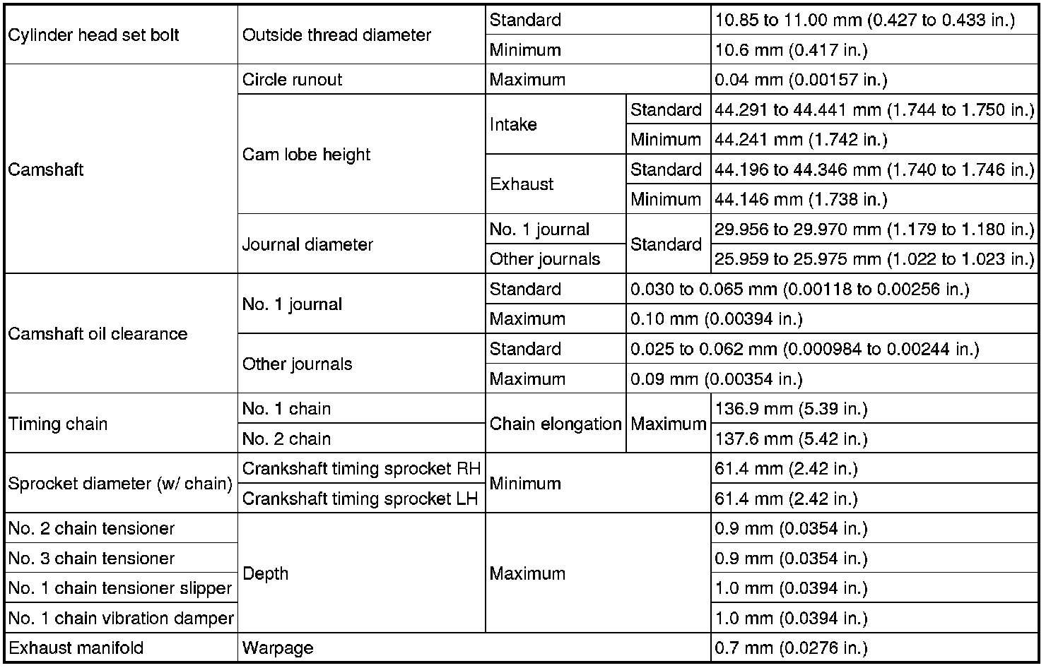 SPECIFICATIONS: 3UR-FE ENGINE MECHANICAL: SERVICE DATA