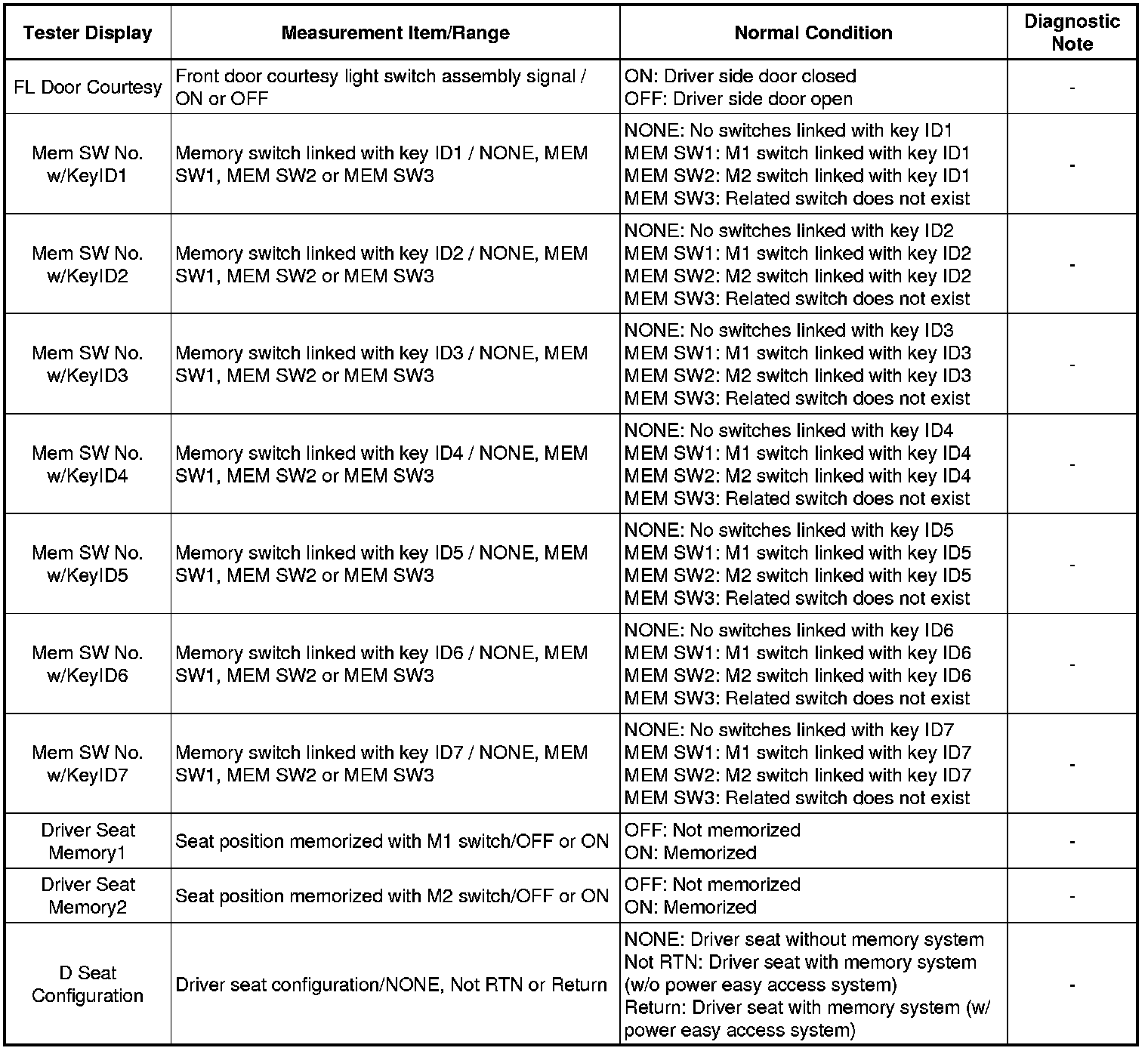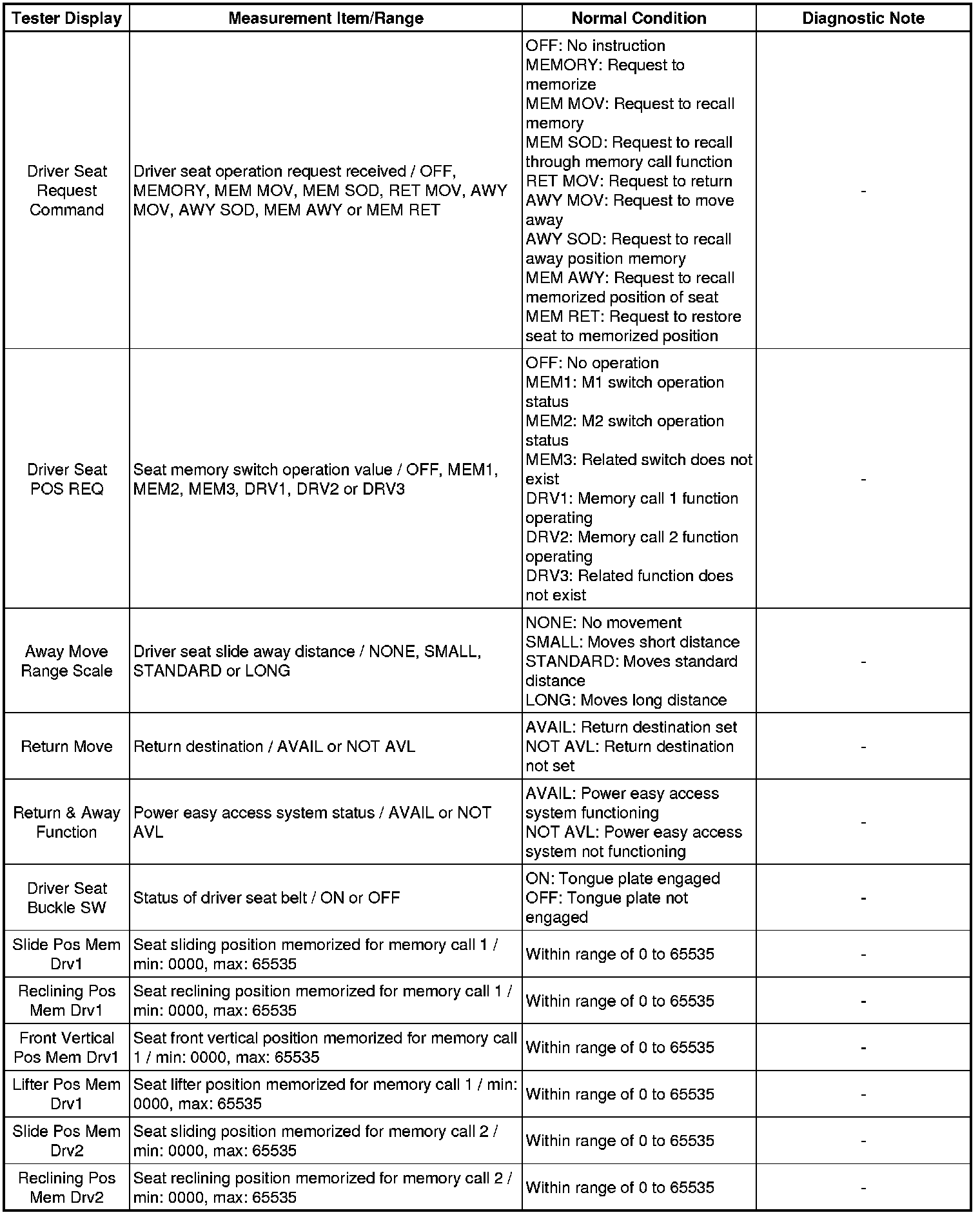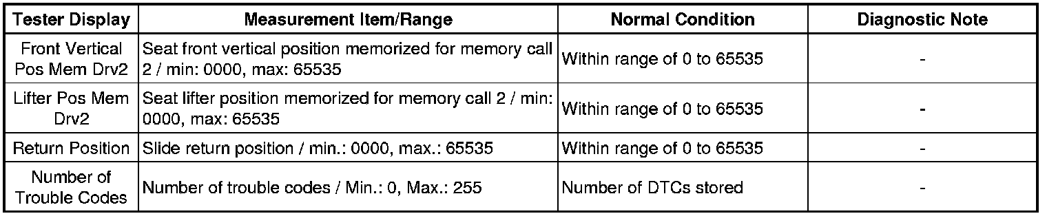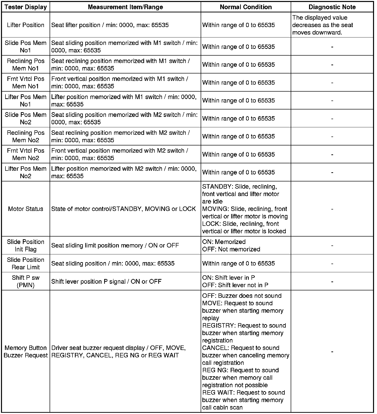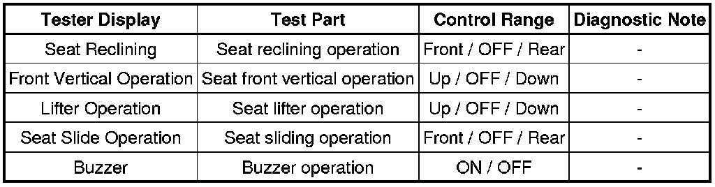 SEAT: FRONT POWER SEAT CONTROL SYSTEM: DATA LIST / ACTIVE TEST