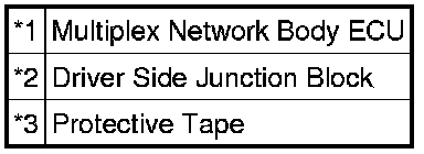 (b) With the junction block lock released, insert a screwdriver with its tip wrapped with protective tape horizontally between the multiplex network body ECU and junction block.