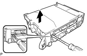 (c) Using the screwdriver, carefully raise the multiplex network body ECU until the connector becomes disengaged.