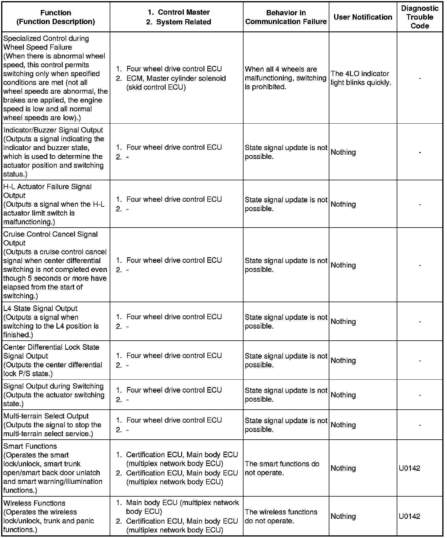 (a) When communication fails in any of the CAN bus wires (communication wires), a fail-safe function(s) operates. The fail-safe function that is specified for each system operates to prevent those systems from malfunctioning.