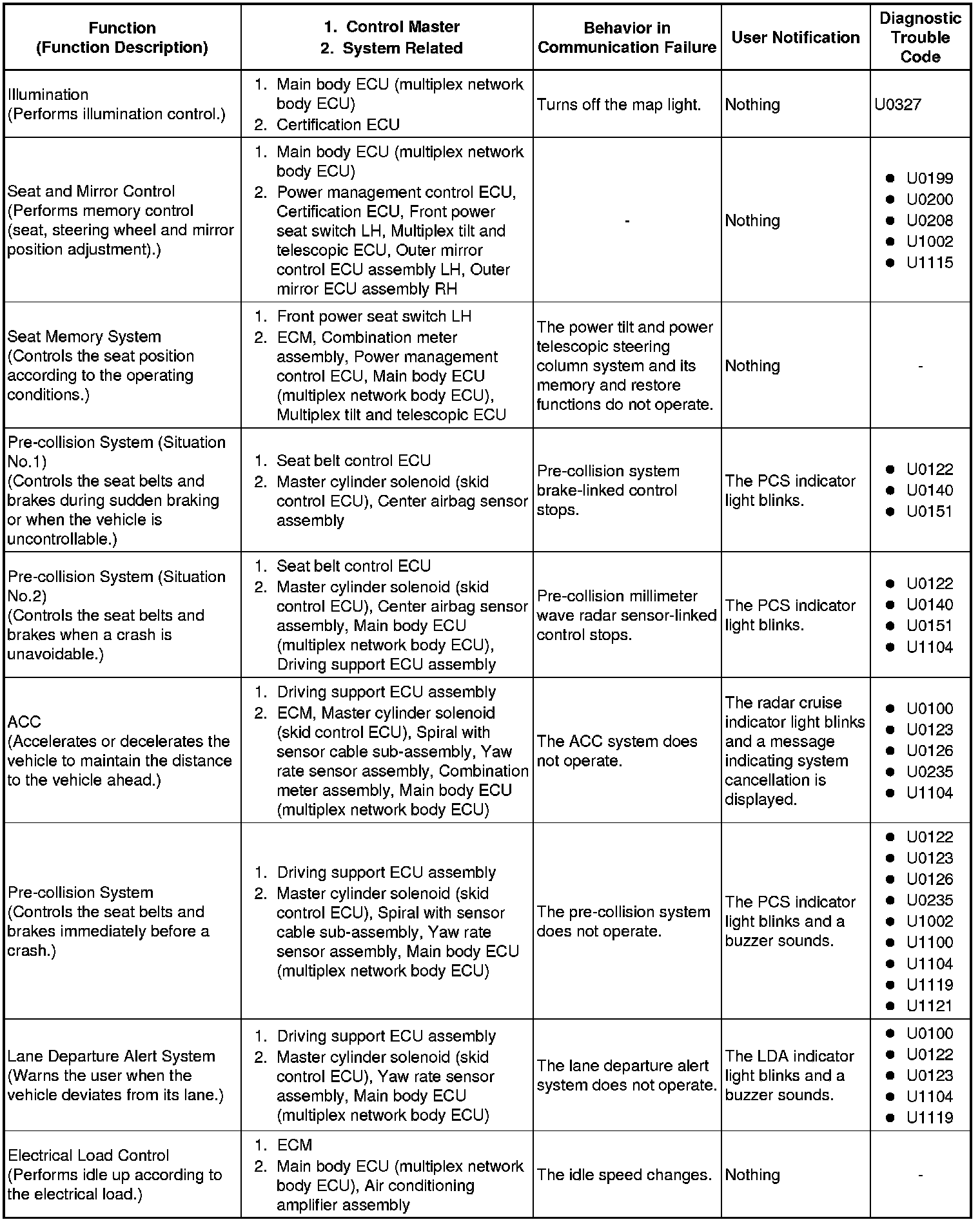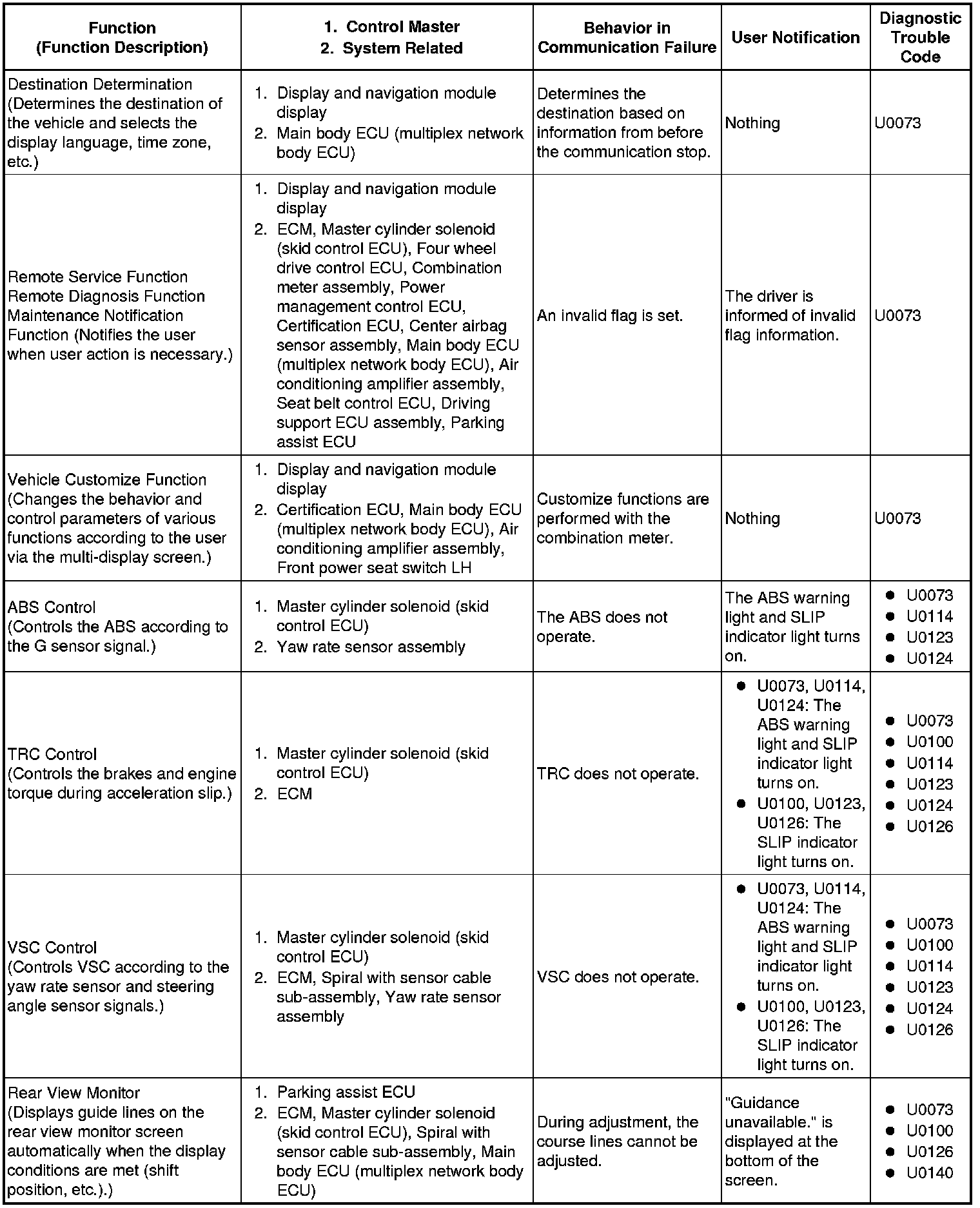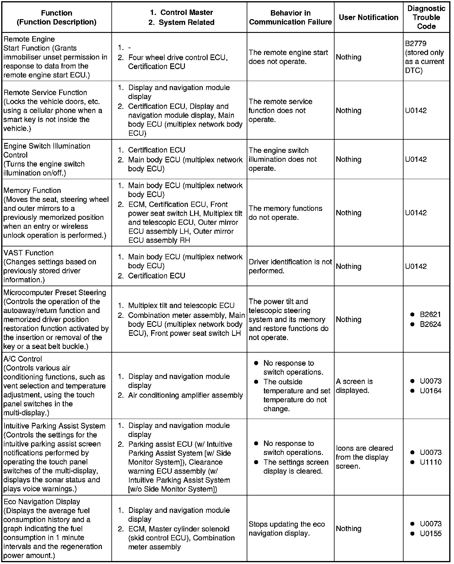 (b) Effects on each system when communication is impossible (for further details, see the pages for each system).