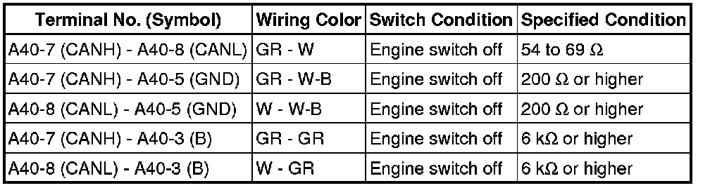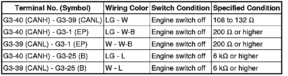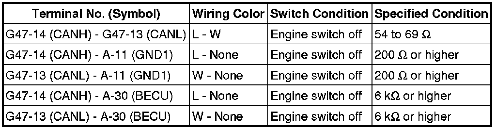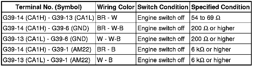 * Before measuring the resistance, leave the vehicle for at least 1 minute and do not operate the engine switch, any switches or any doors. If doors need to be opened in order to check connectors, open the doors and leave them open.