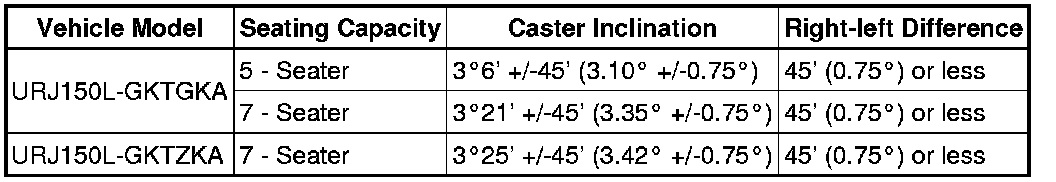 Standard Caster Inclination (Unloaded Vehicle):