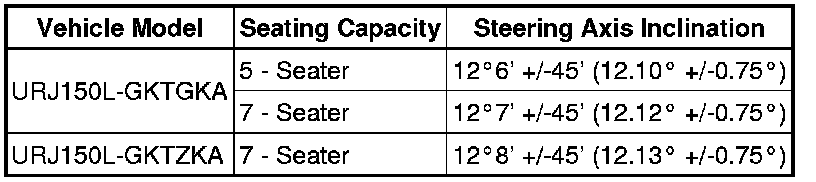 Standard Steering Axis Inclination (Unloaded Vehicle):