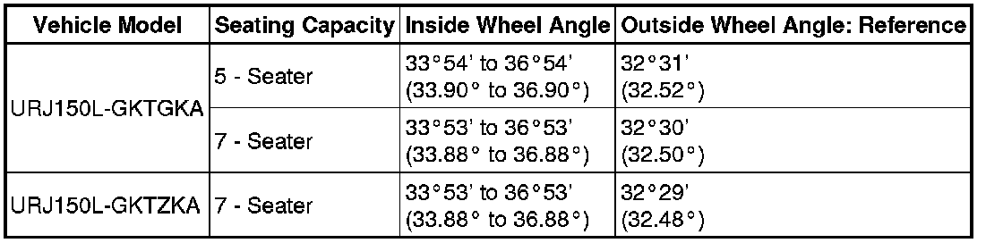 Standard Wheel Turning Angle (Unloaded Vehicle):