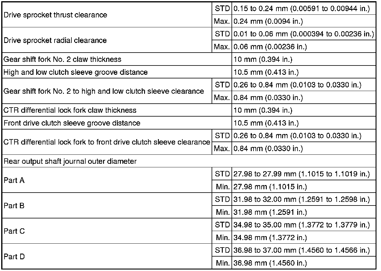 SPECIFICATIONS: VF4BM TRANSFER / 4WD / AWD: SERVICE DATA