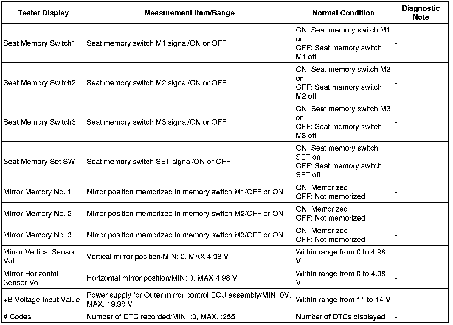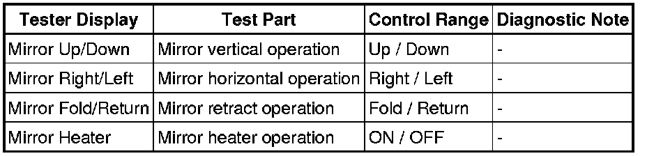 MIRROR (EXT): POWER MIRROR CONTROL SYSTEM: DATA LIST / ACTIVE TEST
