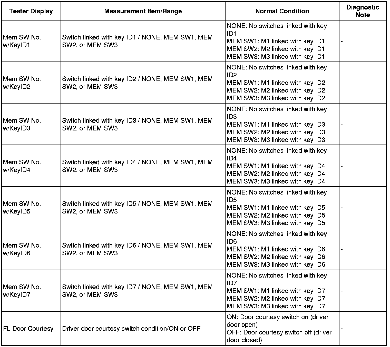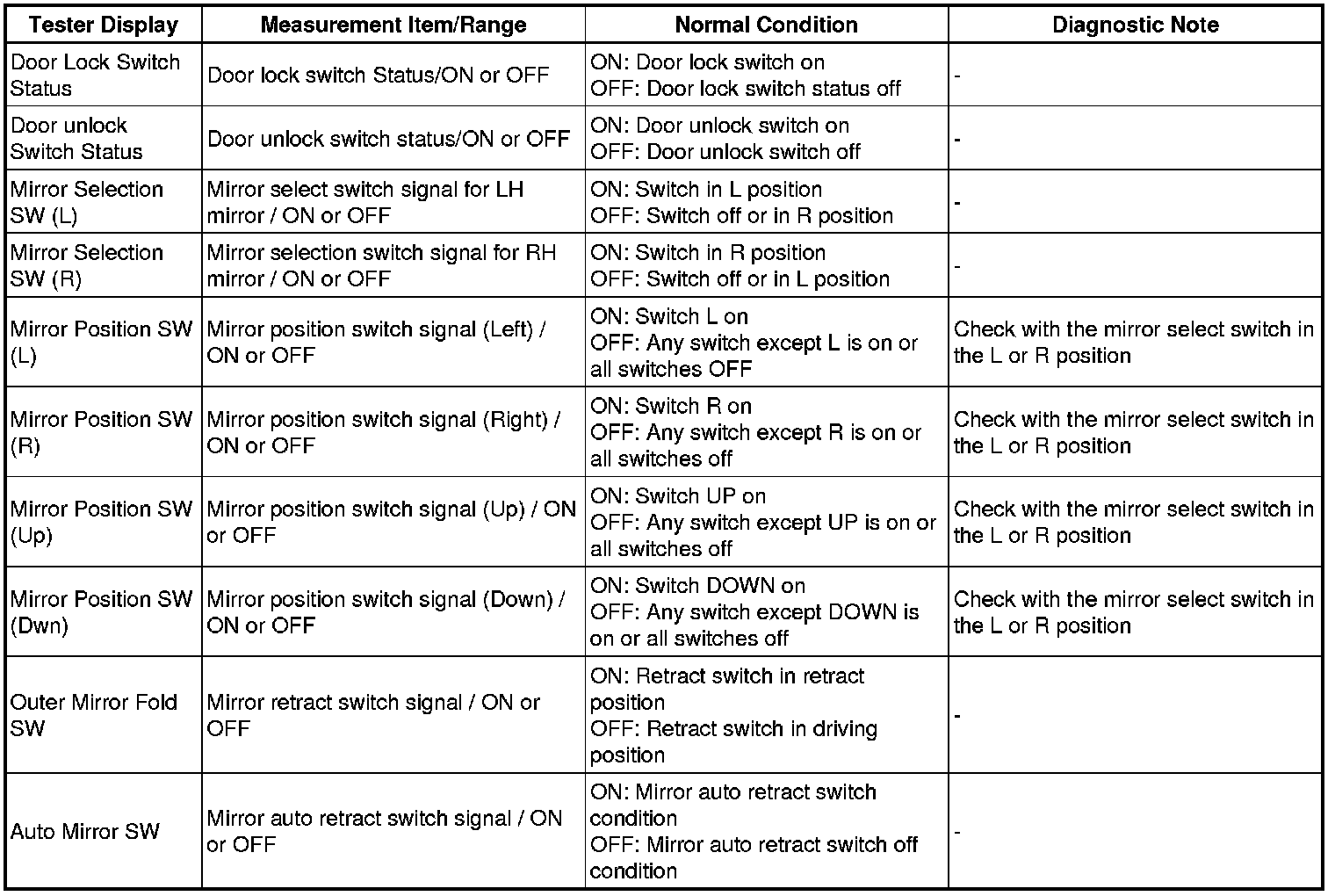 (d) Enter the following menus: Body Electrical / Mirror L or Mirror R / Data List.