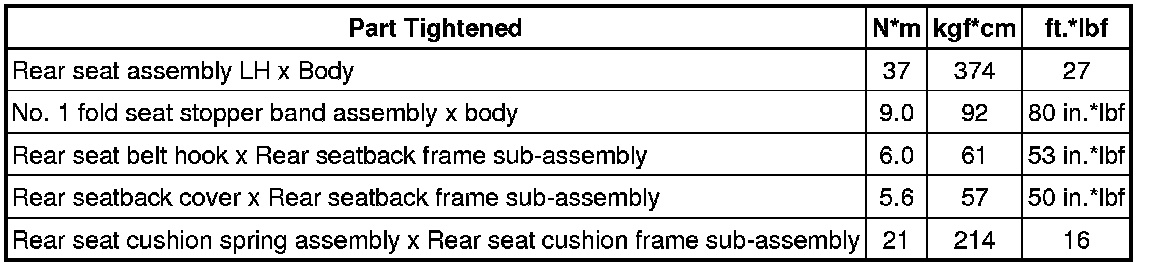 SPECIFICATIONS: SEAT: TORQUE SPECIFICATIONS