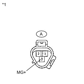 (b) When connector terminal 1 is connected to the positive (+) battery terminal, check that the following occurs: 1) the magnetic clutch's operating sound can be heard, and 2) the magnetic clutch's hub and rotor lock.