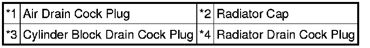 Do not remove the radiator cap, cylinder block drain cock plugs and radiator drain cock plug while the engine and radiator are still hot. Pressurized, hot engine coolant and steam may be released and cause serious burns.