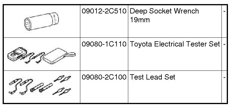PREPARATION: 2GR-FE EMISSION CONTROL: RECOMMENDED TOOLS