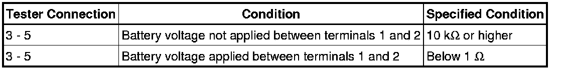 If the resistance is not as specified, replace the relay.
