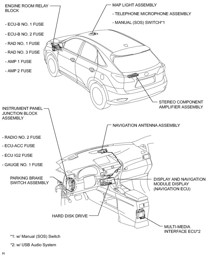 NAVIGATION / MULTI INFO DISPLAY: NAVIGATION SYSTEM (for HDD): PARTS LOCATION