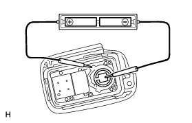 (1) Remove the battery Replacement from the electrical key transmitter that does not operate. Attach a lead wire (0.6 mm (0.0236 in.) in diameter or less including wire sheath) with tape or equivalent to the negative terminal.