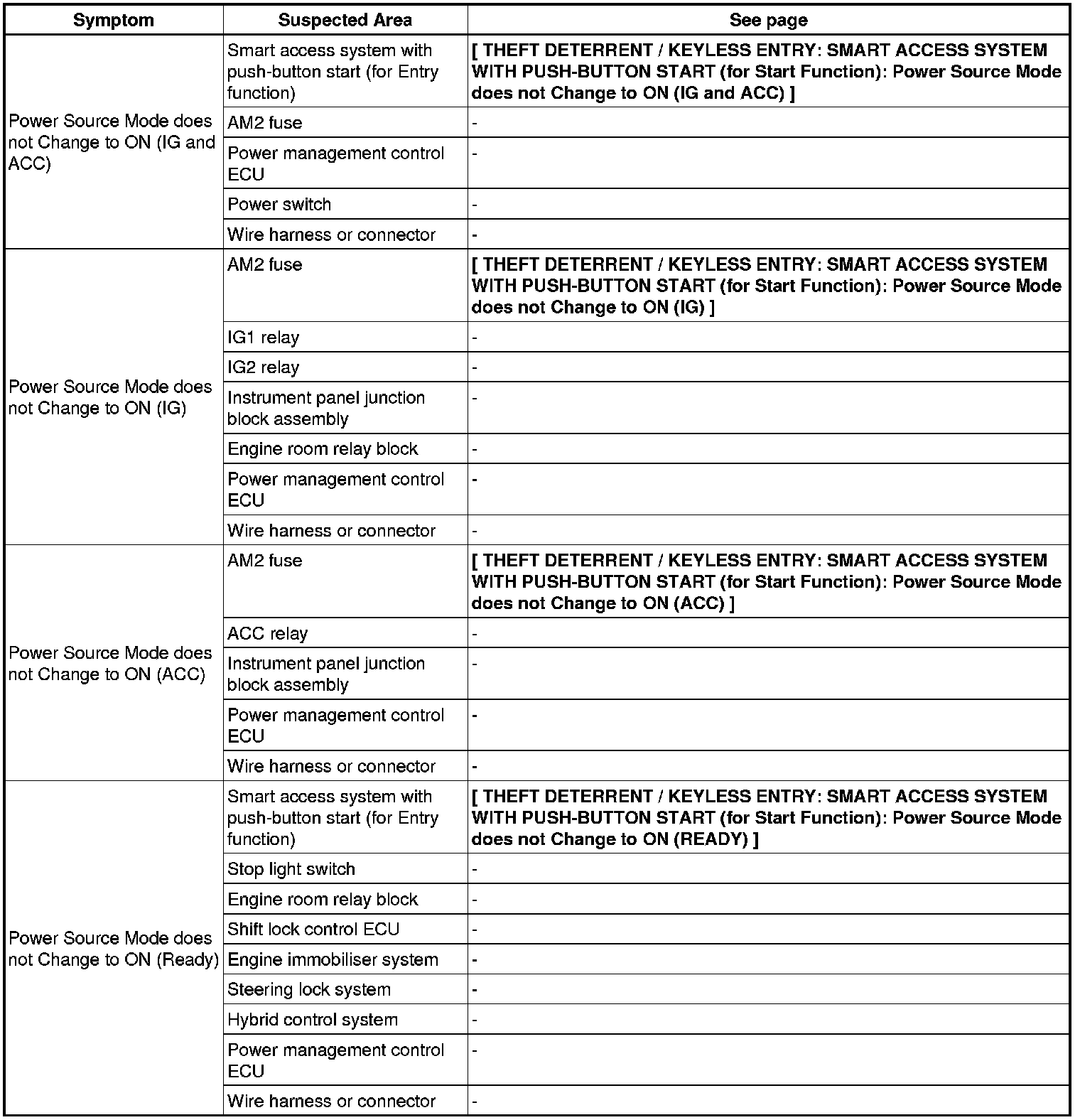 THEFT DETERRENT / KEYLESS ENTRY: SMART ACCESS SYSTEM WITH PUSH-BUTTON START (for Start Function): PROBLEM SYMPTOMS TABLE