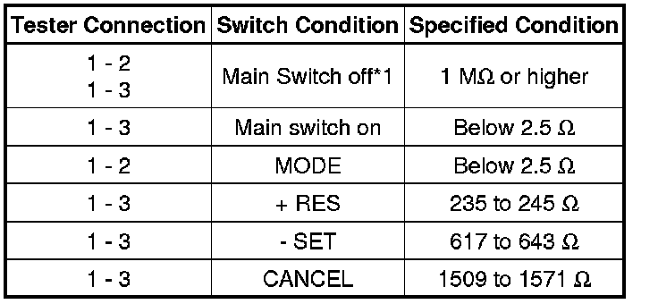 CRUISE CONTROL: CRUISE CONTROL MAIN SWITCH: INSPECTION