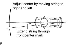 (1) Hang the string (with weight) from the center of the vehicle's rear emblem. Mark the vehicle's rear center point on the ground. Repeat for the front of the vehicle.