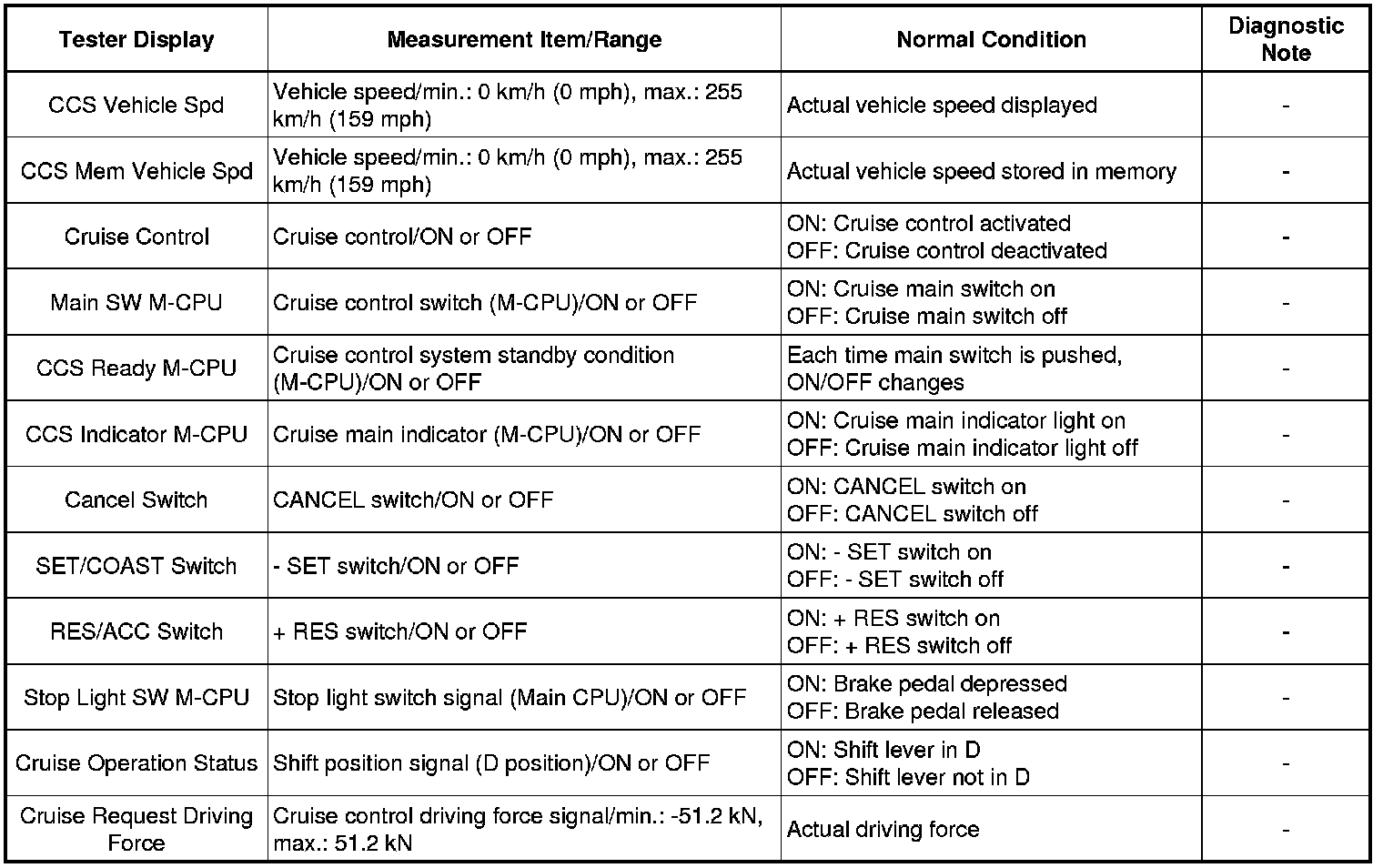 CRUISE CONTROL: CRUISE CONTROL SYSTEM: DATA LIST / ACTIVE TEST
