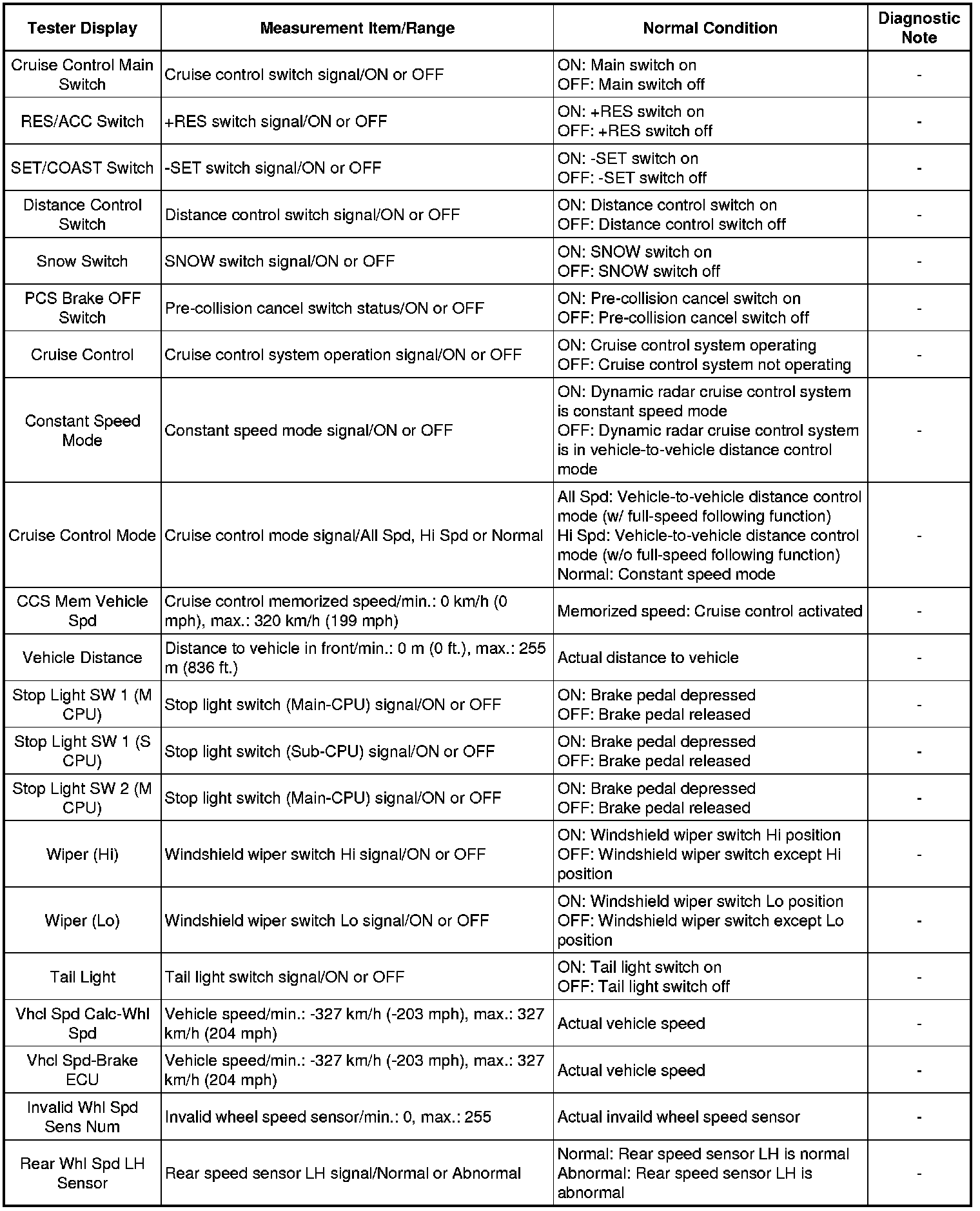 Using the Techstream to read the Data List allows values or states of switches, sensors, actuators and other items to be read without removing any parts. This non-intrusive inspection can be very useful because intermittent conditions or signals may be discovered before parts or wiring is disturbed. Reading the Data List information early in troubleshooting is one way to save diagnostic time.