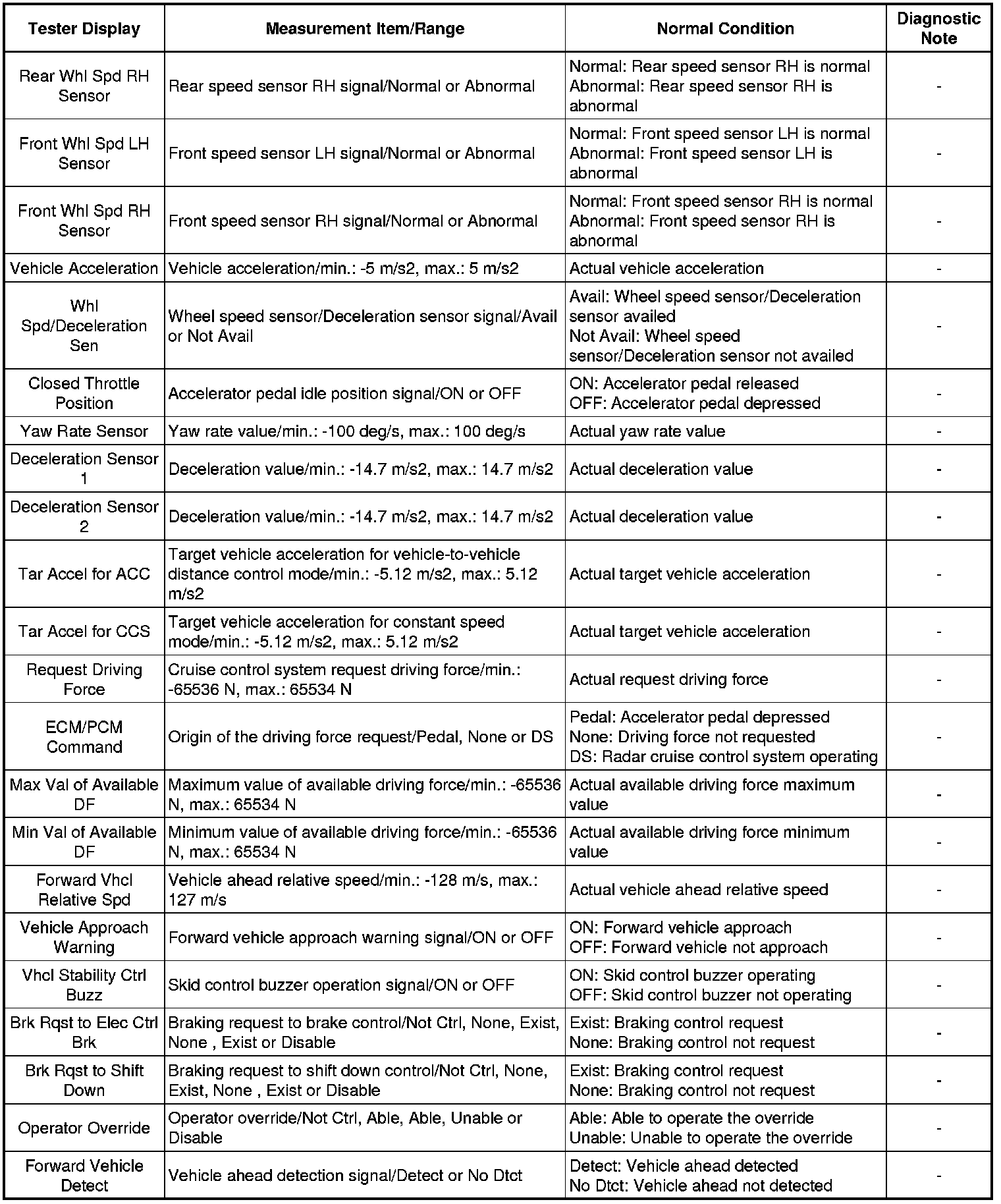 (d) Entire the following menus: Powertrain / Radar Cruise / Data List.