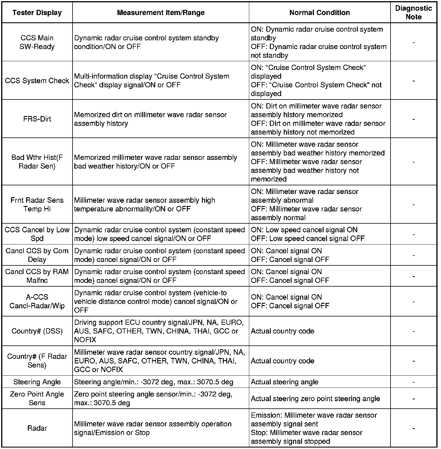 CRUISE CONTROL: DYNAMIC RADAR CRUISE CONTROL SYSTEM: DATA LIST / ACTIVE TEST