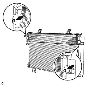 Remove the 2 bolts and radiator assembly from the cooler condenser assembly.