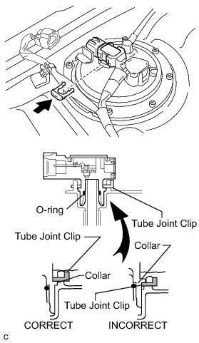 * Check that the tube joint clip is on the collar of the vapor pressure sensor assembly.