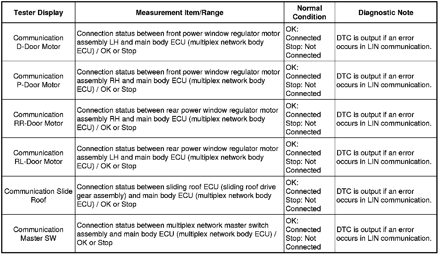 NETWORKING: LIN COMMUNICATION SYSTEM: DATA LIST / ACTIVE TEST