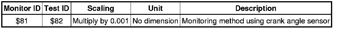 The purpose of the monitor result (mode 06) is to allow access to the results for on-board diagnostic monitoring tests of specific components/systems that are not continuously monitored. Examples are the catalysts and evaporative emission (EVAP) systems.