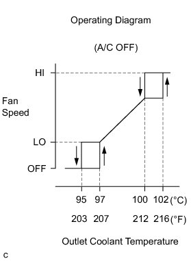 * The coolant temperature at which the fans start operating is approximately 97°C (207°F).