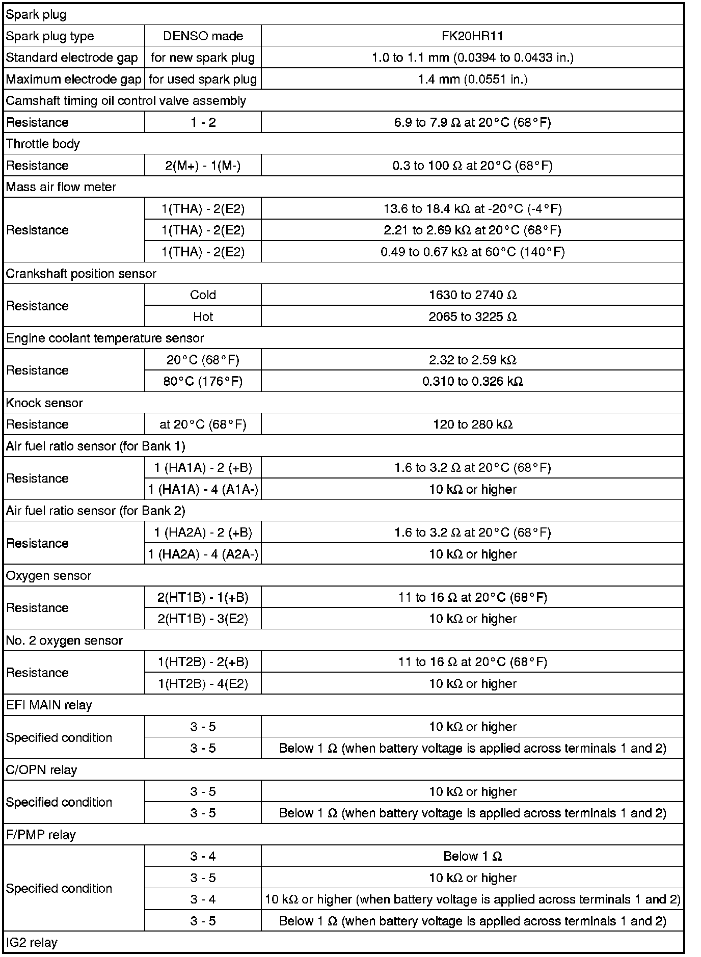SPECIFICATIONS: 2GR-FXE ENGINE CONTROL: SERVICE DATA